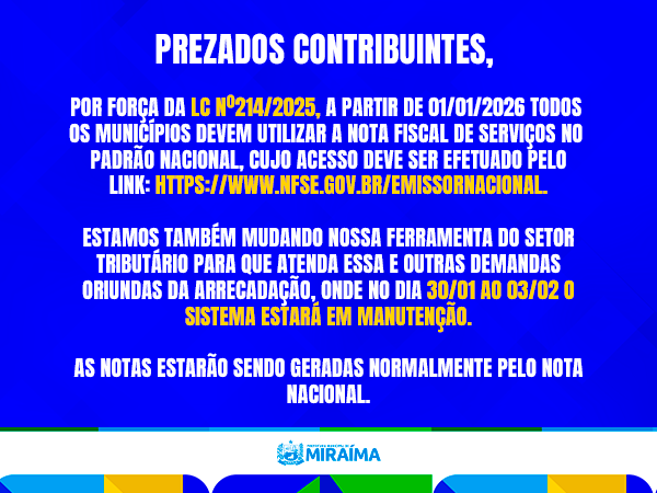 DISPÕE SOBRE A ADOÇÃO DO SISTEMA NACIONAL DA NOTA FISCAL DE SERVIÇOS ELETRONICA NACIONA NFS-E, EM RAZÃO DE CONVÊNIO FIRMADO ENTRE O MUNICÍPIO DE MIRAÍMA E A UNIÃO [...]